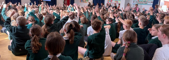 After an assembly to the whole school about positivity,motivation and keeping ourselves healthy, Steel spent time in each year group answering questions about all things Gladiators. As part of Steel's presentation, children will each be given a bottle of water to bring home. Thank you to The Friends of Hartsfield for arranging this visit.